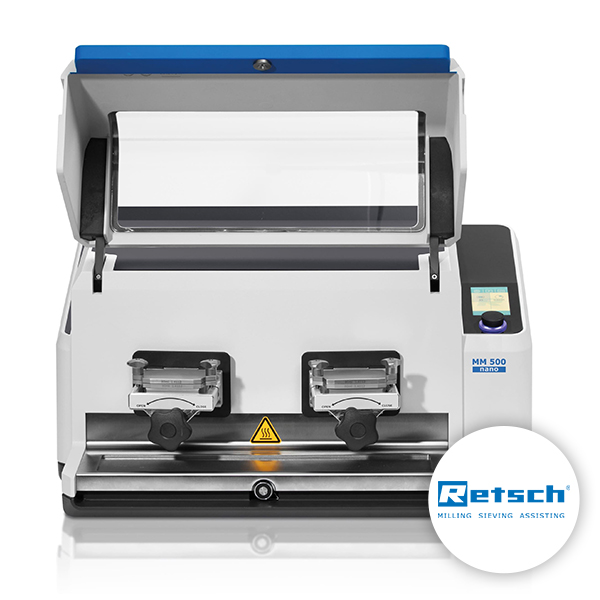 - Use o MM 500 nano para aplicações de preparação de amostra de rotina, para nano-moagem ou para aplicações de pesquisa, como mecanoquímica e ligas mecânicas