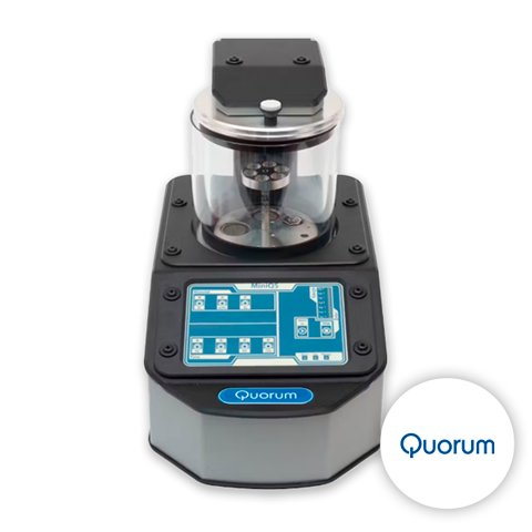 O Quorum MiniQS é ideal para utilizadores preocupados com o orçamento, mas que também exigem resultados reproduzíveis com um instrumento fácil de usar. O MiniQS usa uma cabeça de pulverização catódica magnetron com um alvo de disco fácil de substituir, tem um tamanho compacto sendo ideal para uso em SEMs de bancada. Com Perfis predefinidos com operação de toque único, a cabeça do pulverizador é articulada para fácil operação com a câmara removível como proteção contra implosão e placa superior permitindo fácil limpeza, desta forma os utilizadores podem trocar rapidamente a câmara para evitar contaminação cruzada.